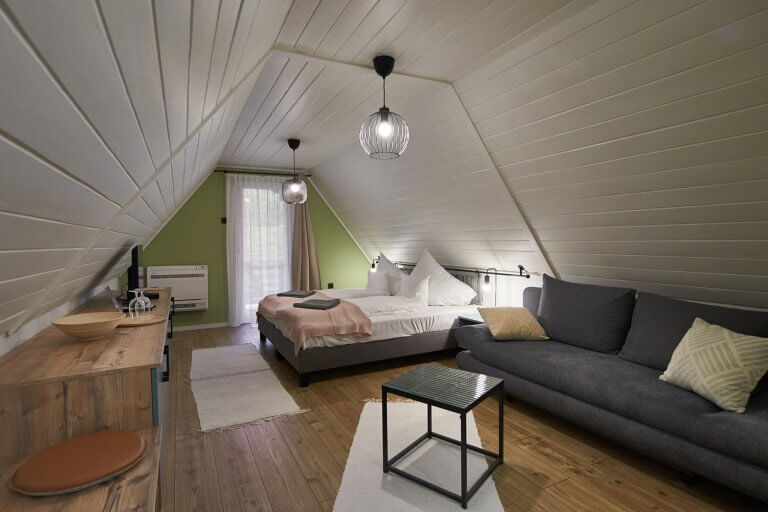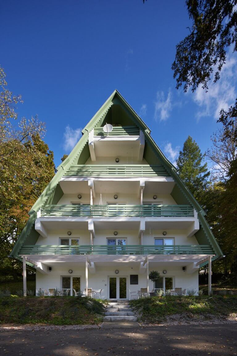 Szálláshelyünk a Mecsek szívében, Pécstől 18 km-re, Sikondán található, csodálatos természeti környezetben. A ház teljes felújításon esett át 2022-ben, az alsó szinten egy kávézó üzemel. Három különböző szobatípusban várjuk vendégeinket, melyek mindegyike saját erkéllyel rendelkezik. A ház szerencsés kialakításának köszönhetően minden teraszról gyönyörű panoráma nyílik a festői tóra.