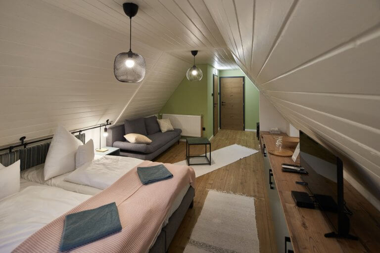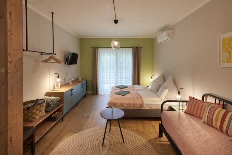 Modern, letisztult, wifivel ellátott szobáink lépcsőn közelíthetőek meg, 4 emeleten keresztül. A ház összesen 32 fő befogadására alkalmas. Lehetőséget biztosítunk nyársalásra, bográcsozásra, vagy grillezésre, igény esetén reggeli is kérhető.